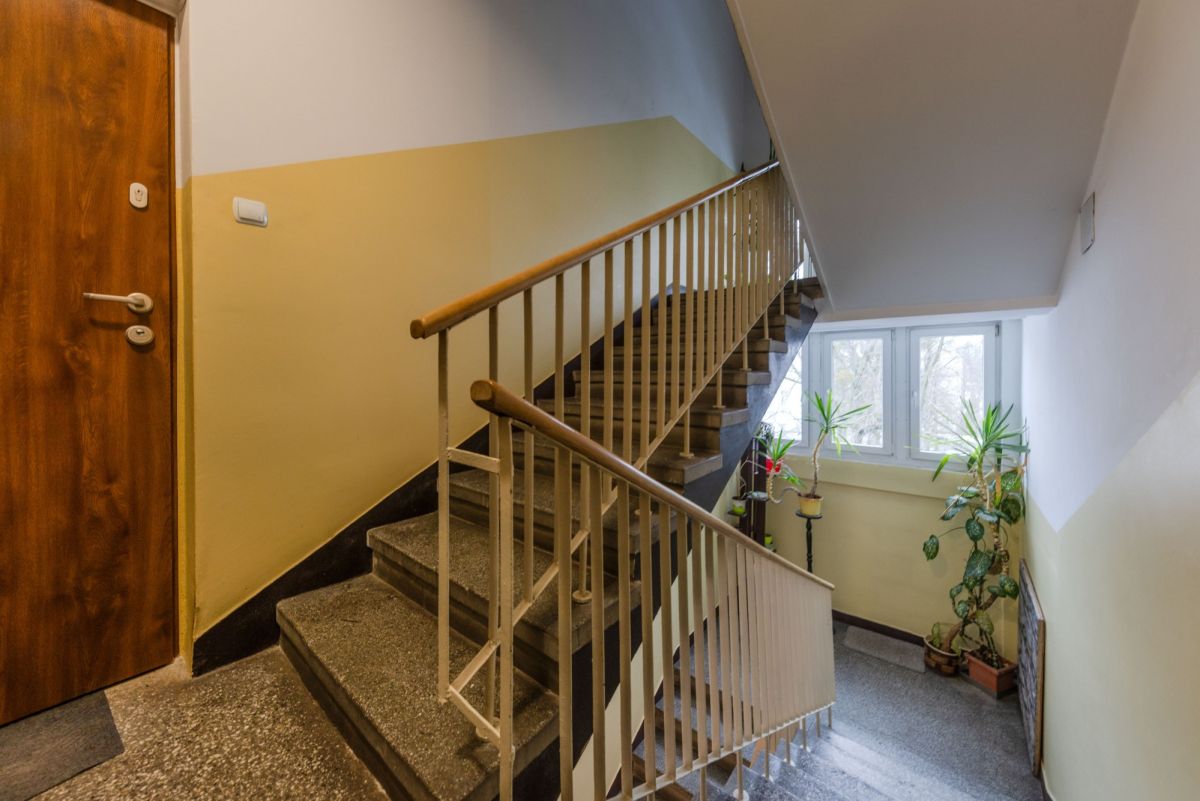 ul. Nałkowskiej 9, na 3 piętrze kamienicy z 1959 roku na Bielanach.