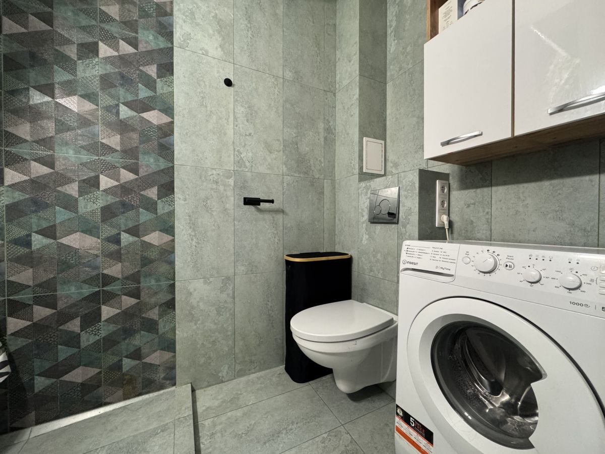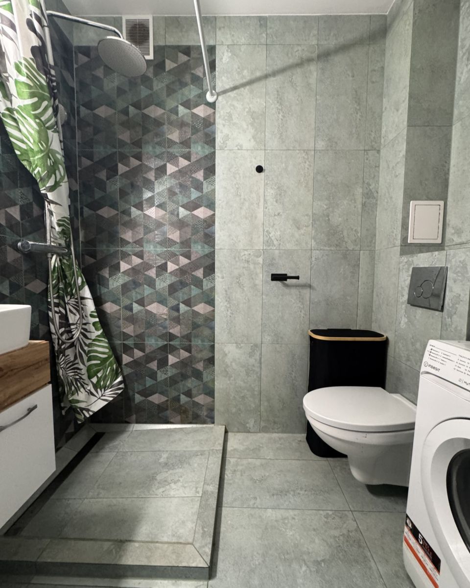 Łazienka: z miejscem na pralkę i dodatkowymi schowkami, po remoncie